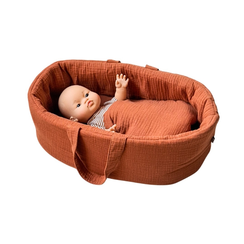 Poppendraagmand caramel mousseline Poppendraagmand caramel mousseline Poppendraagmand caramel mousseline