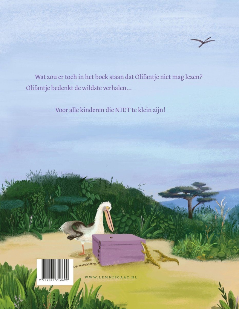 Olifantje krijgt een doos met boeken. Ze zijn allemaal saai, op één boek na. Laat dat nou net het boek zijn waarvan haar moeder vindt dat Olifantje daar te klein voor is!